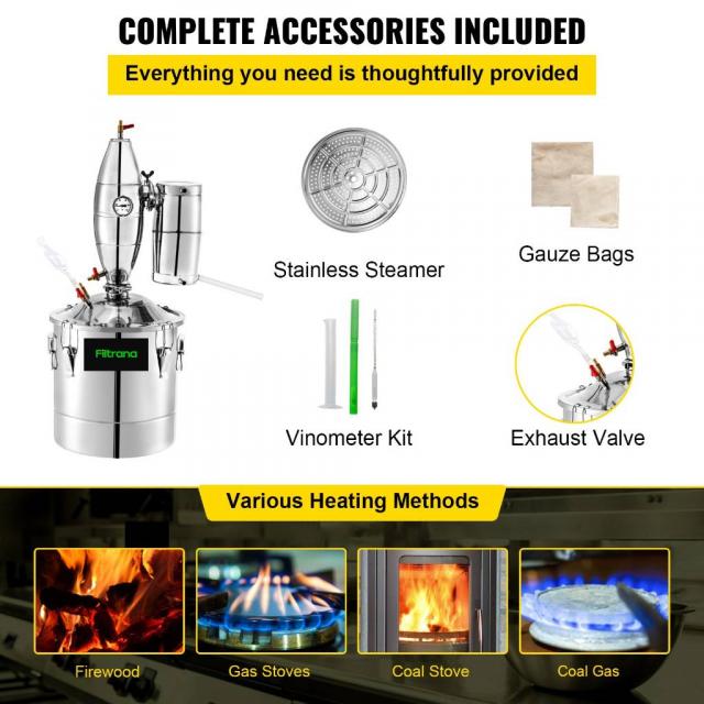 Komplektacija: pilnas aksesuarų rinkinys – viskas, ko reikia pradėti distiliuoti iš karto, be papildomų pirkinių. Lengvas surinkimas be specialių įrankių.